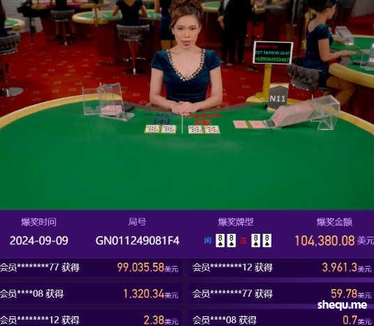 AG百家乐奖池在9月9日清晨,迎来了9月首个对子大奖!本次奖池由3位幸运儿获得,共夺745,575元的丰厚奖金。中秋节前夕是否会接著开出更多的大奖呢?让我们拭目以待!本次爆奖信息:开奖时间:北京时间 2024/9/9 2:47:45开奖局号:GN011249081F4桌台号:N11爆奖牌型为:闲 ♠8 ♠8 |庄 ♠8 ♠8开奖金额:¥745,575 元