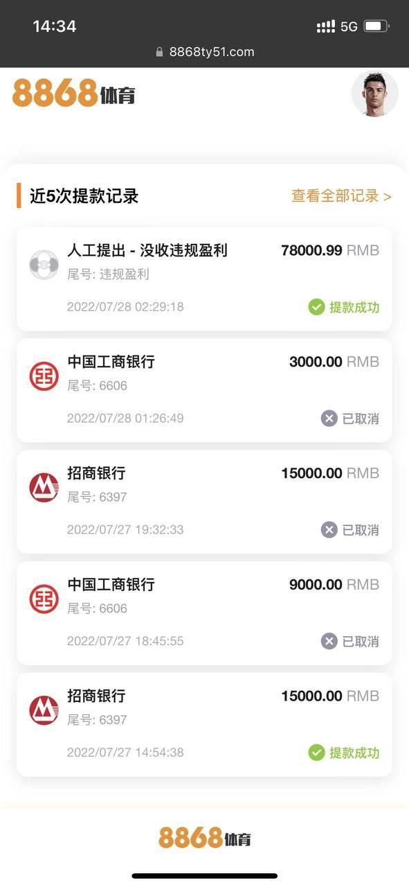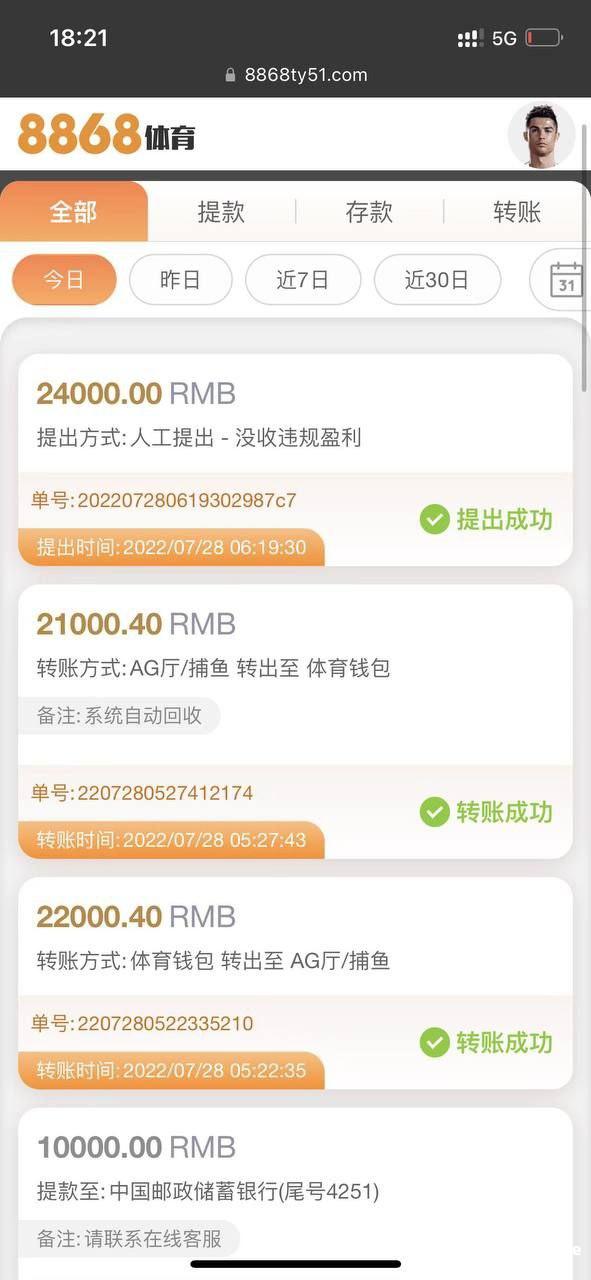 我本来不想发的,但是还是看见这个8868在害人,我是22年被8868体育黑了18w想不到现在这台子还在开,还在祸害别人。他这个台子是只能输的台子,你赢了,他不会在客服端跟你说都是打电话来说,系统出错误。前面玩了一个月送了断断续续10万多,就是一次红了18个被黑了,打电话来说是系统出错,退本金还需要打够流水才可以提,我也认了,当时毕竟钱在他那边,后面就是退给我本金到账号,继续打流水。进去又赢了2w5,因为本人打的是电子ag扑鱼,号上三万多,我想提款,又是一样套路,还是说系统出错。还是扣了我赢的,还是退本金,但是不给我进去ag里面任何游戏了。玩这么久第一次被黑。本来想报警的,后面想想算了。我当时有截图我放到微信收藏起来了,发出来的意义是避免更多人受害,这个平台存在很久了,还在玩的,别想你还能提,我之前也是提,你只要一赢,他就会黑。因为到现在我还在玩,多的少的也都可以提,只是这个平台不行。希望大家早点远离吧。